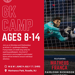 Join us on Mondays and Wednesdays as NCAA D-1 goalkeeper Matheus França leads a 6-week long camp for aspiring goalkeepers. Any level of experience is encouraged to participate! Spots will be limited to ensure individual attention.